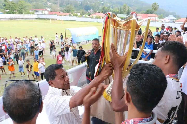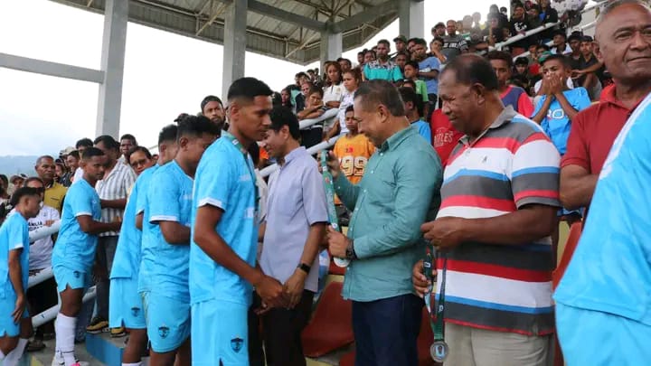 Ermera, 9 Janeiru 2026 — Vise Ministru Administrasaun Estatal, S.E. Jacinto Rigoberto Gomes de Deus, partisipa no asiste iha Jogu Finál Torneiu Futeból Rotativu Pe. Mário do Carmo Lemos Belo, ne’ebé hala’o iha Estádiu Café Gleno Munisípiu Ermera